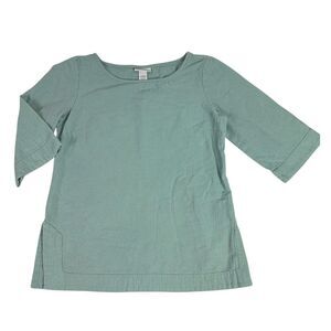 Soft Surroundings Cotton Tunic Blouse Womens Size Medium Pale Aqua