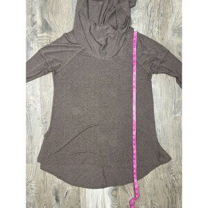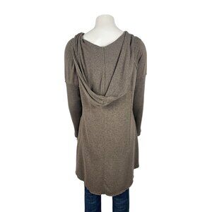 Soft Surroundings Cowl Hooded Raw Hem Pullover Large Taupe Brown Tunic Top Shirt