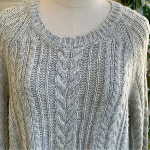 Soft Surroundings Cozy Cold Shoulder Sweater Plus Size 3X Gray Cable Knit Wool