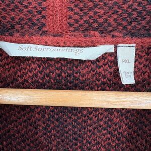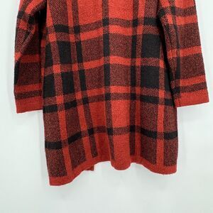 Soft Surroundings Cozy Cottage Long Open Cardigan Red Plaid, PXL, Wool Alpaca