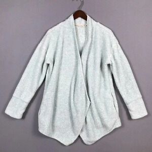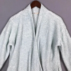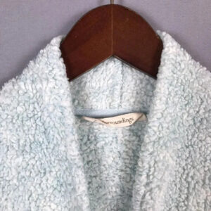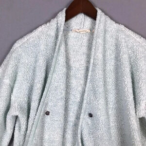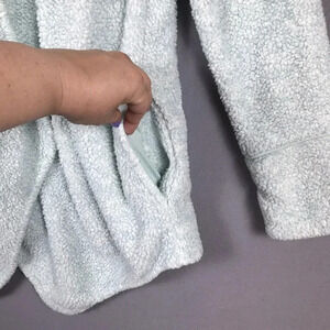Soft Surroundings Cozy Up Cardi Cardigan Medium M Fleece Pockets Snap Front Blue