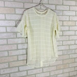 Soft Surroundings Cream Button Back Flutter Sleeve Top Size S