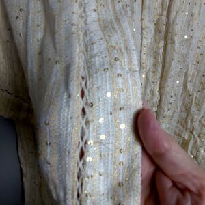 Condition: New with tags. No visible stains, snags, or missing sequins. Loose weave, subtle yarn variations, and light storage wrinkles are inherent to the fabric and mentioned on the hangtag.