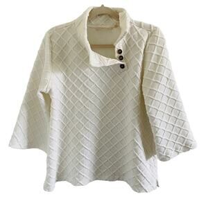 Soft Surroundings Cream Textured Diamond Pattern Pullover Sweatshirt Top