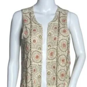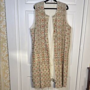 Soft Surroundings Cream and Apricot Open Front Midi Vest Chic Layering Essential