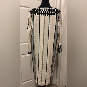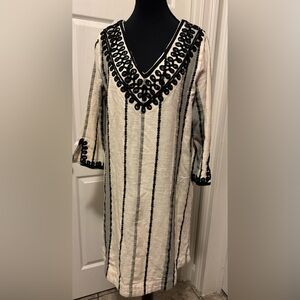 Soft Surroundings Cream and Black Embellished Sheath Dress