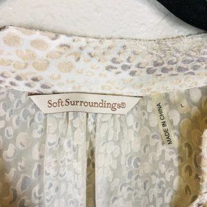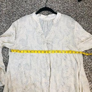Soft Surroundings Cream and Gray Animal Print Sheer Swing Button Down Tunic, Size Large