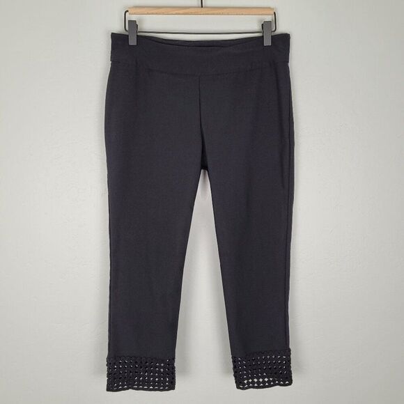 Soft Surroundings Crop Pull On Pants Crochet Trim Stretch Black Size PM Petite