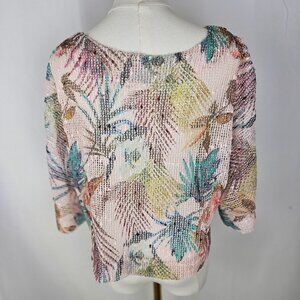 Soft Surroundings Cropped Cardigan Sweater Small Tropical Leaf Mesh-Weave Pink