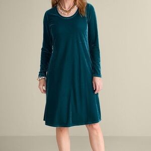 Soft Surroundings Crushed Velvet Embroidered Boho Dress Green 1X
