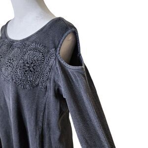 Soft Surroundings Cutout Shoulder Waffle Cut Thermal Tunic Womens Size S Gray