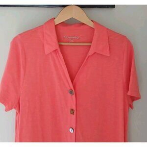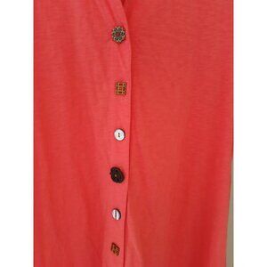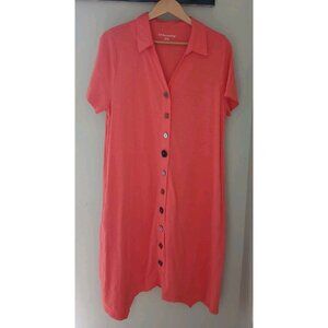 Soft Surroundings Danielle Button Dress. Size XL. Coral pink. Asymmetrical (trapezoid) Hem. Knee length at shortest, just below knee on sides. Fun button details. Coastal, beach, vacation. In nice, preowned condition. No flaws noted. Measures approximately 21" pit to pit, 41" shoulder to hem at highest point.