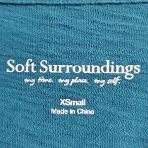 Soft Surroundings Danielle Button Top XS Teal Tunic Shirt Collared 100% Cotton