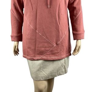 Tags: Soft Surroundings Danika, pink cotton pullover, funnel neck tunic, textured cotton top, withered rose shirt, long sleeve tunic XL, comfy casual women’s top, minimalist lounge layer