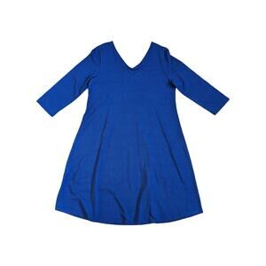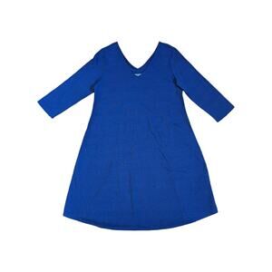 Soft Surroundings Daphne Dress Blue Lapis 3/4 Sleeve V-Neck Flowy Womens Small
