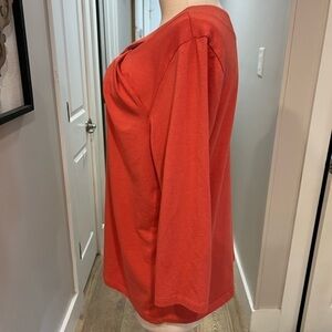 Soft Surroundings Dark Coral Long Sleeve Top with Cross Cross Element at Chest