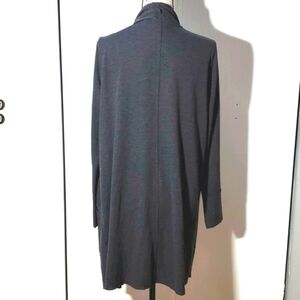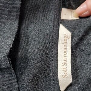 Soft Surroundings Dark Gray Open Cardigan Pockets Embroidered Knit Neutral Sz.L