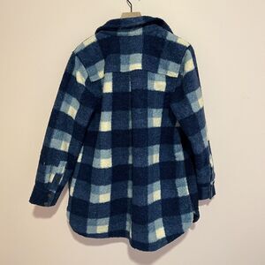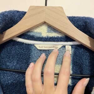 Soft Surroundings Dealto Jacket Sherpa Blue White Plaid Pockets Snap Front Sz L