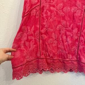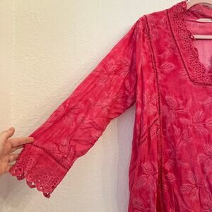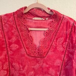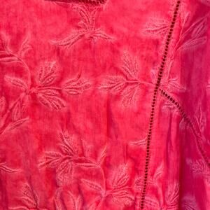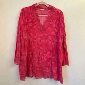 Soft Surroundings Deidre Tunic Top 1X Bright Pink Embroidered Eyelet Floral Boho