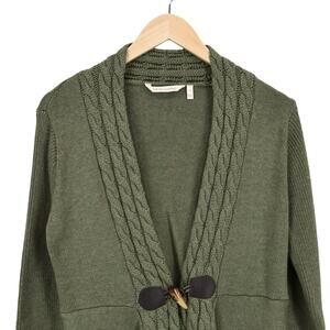 Soft Surroundings Delacroix Cable Knit Cardigan Sweater Olive Green Size Small