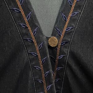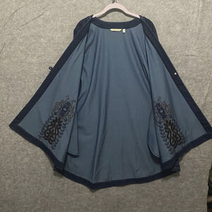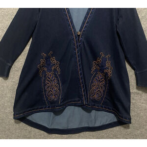 Soft Surroundings Denim Jacket Womens Sz L Blue Embroidered Boho Classic