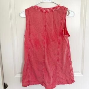 Soft Surroundings Double Pocket Cotton Sleeveless Top Red Pink Medium Petite