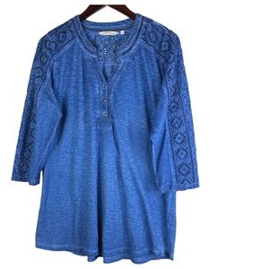Soft Surroundings Draco Top Tunic Shirt Sz Large 12 14 Blue Lace Boho Peasant