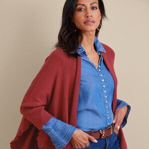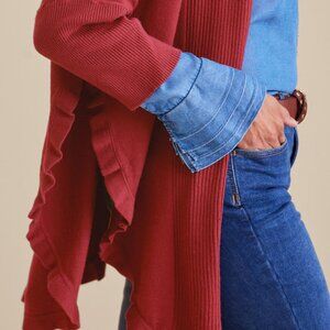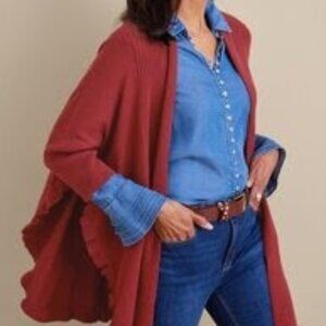 Soft Surroundings Draped Ruffle Cardigan In Cabernet Red Size S / M NWT