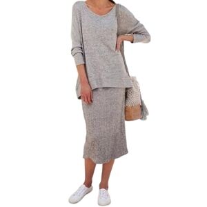 Soft Surroundings Drella Soft Ribbed Knit Midi Skirt in Grey Size L