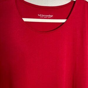 Soft Surroundings Dress Red Lucia Solid Flounce Ruffled Tiered Midi NWT Size L Style#: 2DW4410701 - Flounce - Ruffled Tiered - Long Sleeve - Pull On - Midi Material: 60% Cotton 40% Modal Color may slightly vary from photos. Condition: New with tag.