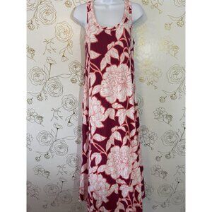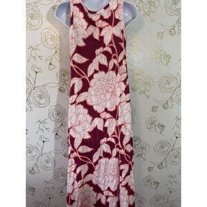Soft Surroundings Dress Size Medium Red White Palm Hawaiian Maxi Pockets 025