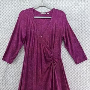 Soft Surroundings Dress Women M Burgundy Jersey Stretch A-Line 3/4 Sleeve V-Neck