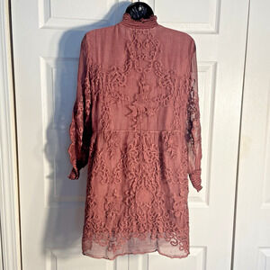 Soft Surroundings Dress Women Small Mauve Silk Tunic Embroidered High Neck Lined