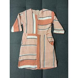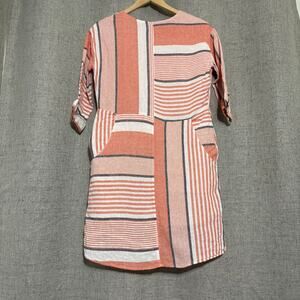 Soft Surroundings Dress Women XS Orange Cream Linen Oversized Lagenlook Boho