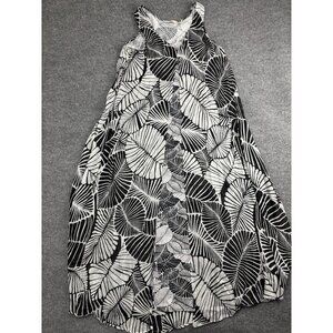 Soft Surroundings Dress Womens Medium Black White Leaf Sleeveless Boho Pockets
