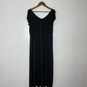 Soft Surroundings Dress Womens Petite Medium Black Maxi Ruffle Off Shoulder