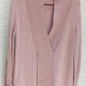 Soft Surroundings Dusty Mauve Fuzzy Knit V-Neck Sweater.