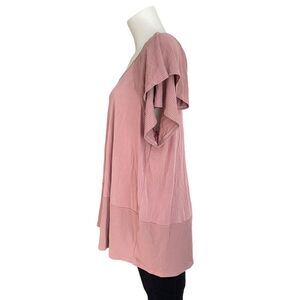 Soft Surroundings Dusty Rose Ribbed Layered Short Sleeve Tunic Top size Large