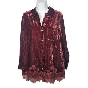Soft Surroundings Eden Velvet and Lace Shirt in Cabernet Red - Size M, in LIKE NEW CONDITION.