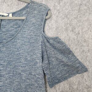 Soft Surroundings Electra Cold Shoulder Knit Maxi Dress Women's L Tall Blue Cozy