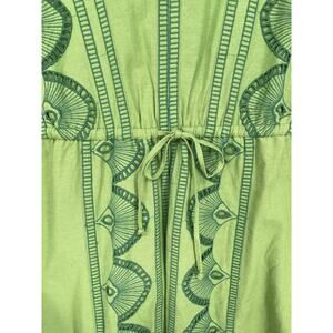 Look like a dream in green. Lightweight and airy, the linen blend Ellison is quite possibly the perfect summer dress. A V-neck flatters, while a comfy elastic waist ties to give shape. The paneled skirt adds movement and definition, and the allover eyelet embroidery adds texture and detail. Perfect for tropical getaways or summer stay-cays!