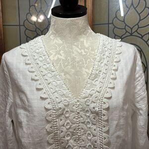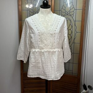 Soft Surroundings Elodie Windowpane Gauze Top Blouse Lightweight Size PM