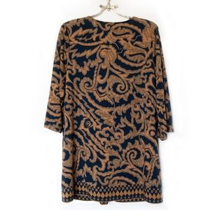 Soft Surroundings Embellished Blue and Brown V-Neck Tunic Size Large