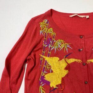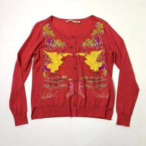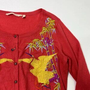 Soft Surroundings Embroidered Cardigan Size Small Sweater Crane Bird Asian Boho
