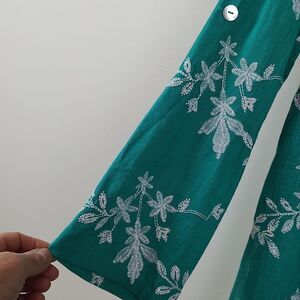 Soft Surroundings Embroidered Isla Verde Linen Blend Button Front Tunic Top NWOT