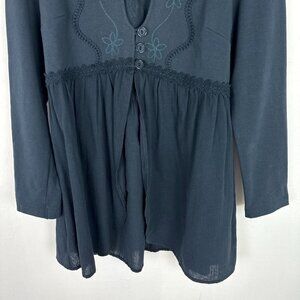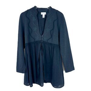Soft Surroundings Embroidered Long Cardigan Tunic Mixed Media Navy Size Small S