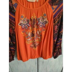 Soft Surroundings Embroidered Md Long Sleeve Top Boho