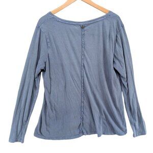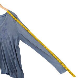 Soft Surroundings Embroidered Top Womens Blue Long Sleeve Cotton V Neck Sz L
