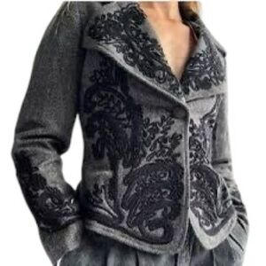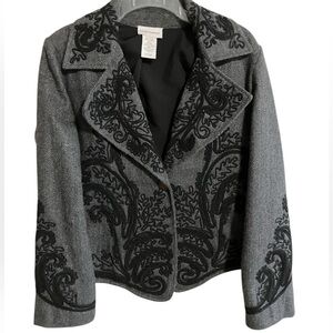 Soft Surroundings Embroidered Wool Blend Equestrian Western Blazer Women Small