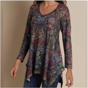 Soft Surroundings Emilie Tunic Top Size PS (Petite Small) Scoop Neck Knit Floral Paisley Long Sleeve. Excellent pre-owned condition with no flaws found. Measurements in photos. Fast shipping!
